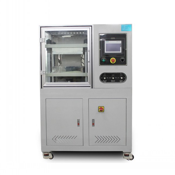 高溫型真空平闆硫化儀由液壓缸、液壓站、真空密閉室、上下高溫壓闆和PLC控制系統組成。可通過真空泵抽真空室,對聚合物在專用模具内進行高溫450°加熱加壓成型,可設定壓力、溫度(最高450°)、時間和排氣次數及秒數、人機界面操作系統、硫化過程動态實時顯示和監視,擠壓程序自動完成,結構簡單,具有壓力大、适用性廣、效率高等特點。