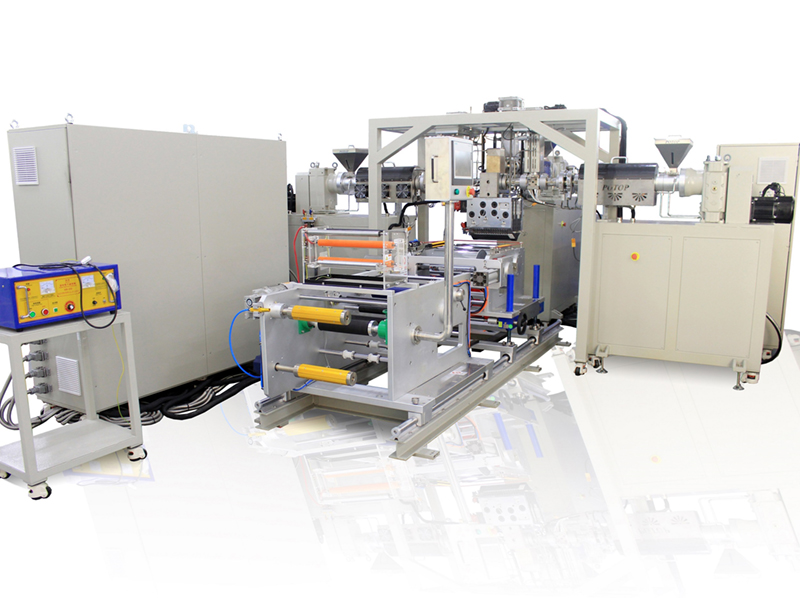 采用熱緻相分離(TIPS)法工藝的锂電隔膜成套實驗與試産設備,實現了高分子材料的混煉擠出、流延成型、雙向拉伸、萃取定型、二級拉伸自動收卷等锂電隔膜生産制備的整個流程。