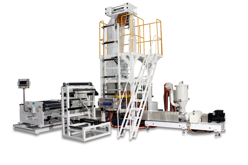 五層多層共擠吹膜實驗線可用于測試和加工多種材料,并自動精确地完成擠出過程中的熔體壓力、溫度等重要信号的測量。